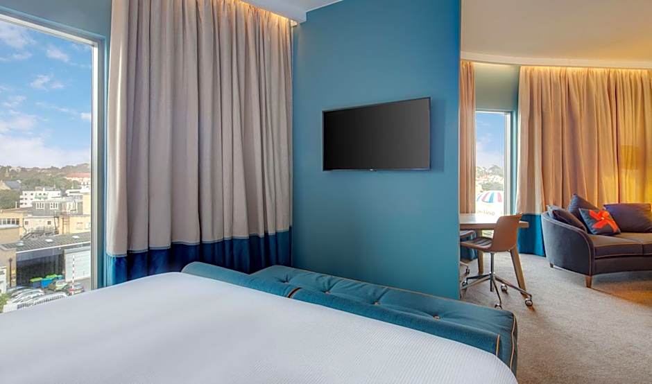 This suite also features a 49-inch HD TV, espresso machine and a king-size bed. There is also a dining area. An extra bed is available on request.